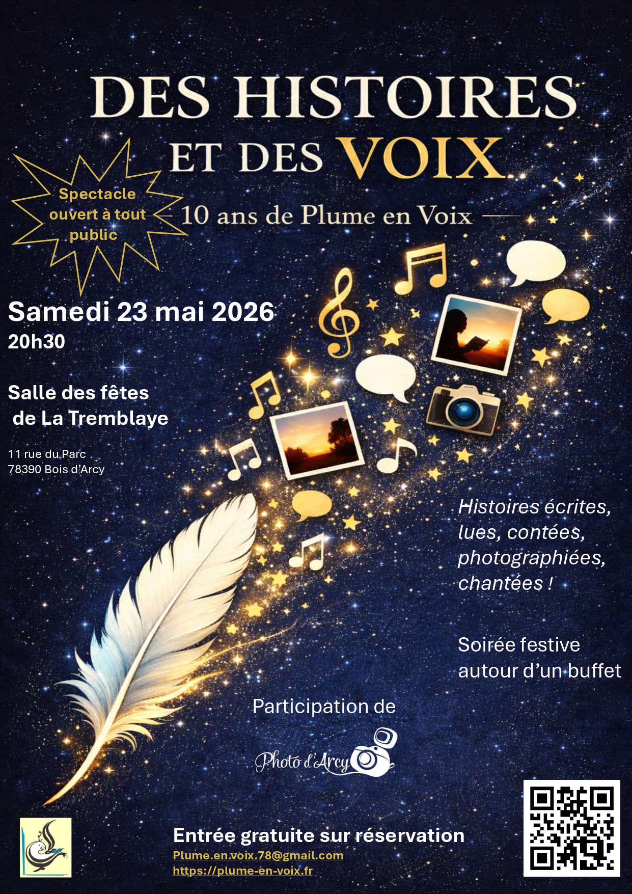 Le samedi 23 mai 2026 à 20h 30 dans la salle des fêtes de La Trembaye de Bois d’Arcy, nous fêterons les 10 ans de notre association. Tout le monde est invité, il suffit de réserver.